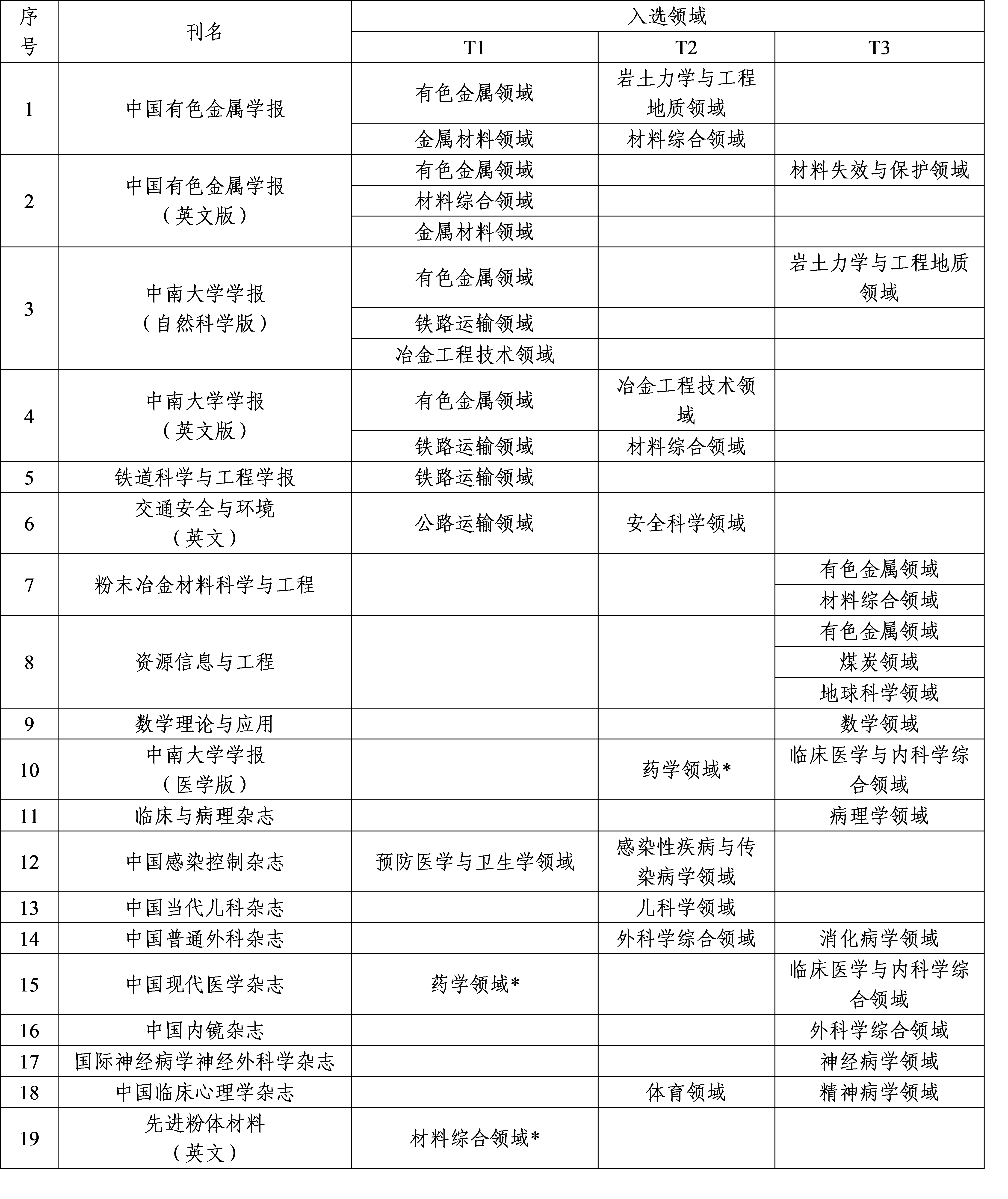 *中南大学入选2025年中国科协《高质量科技期刊分级目录(第五版)》期刊名单: