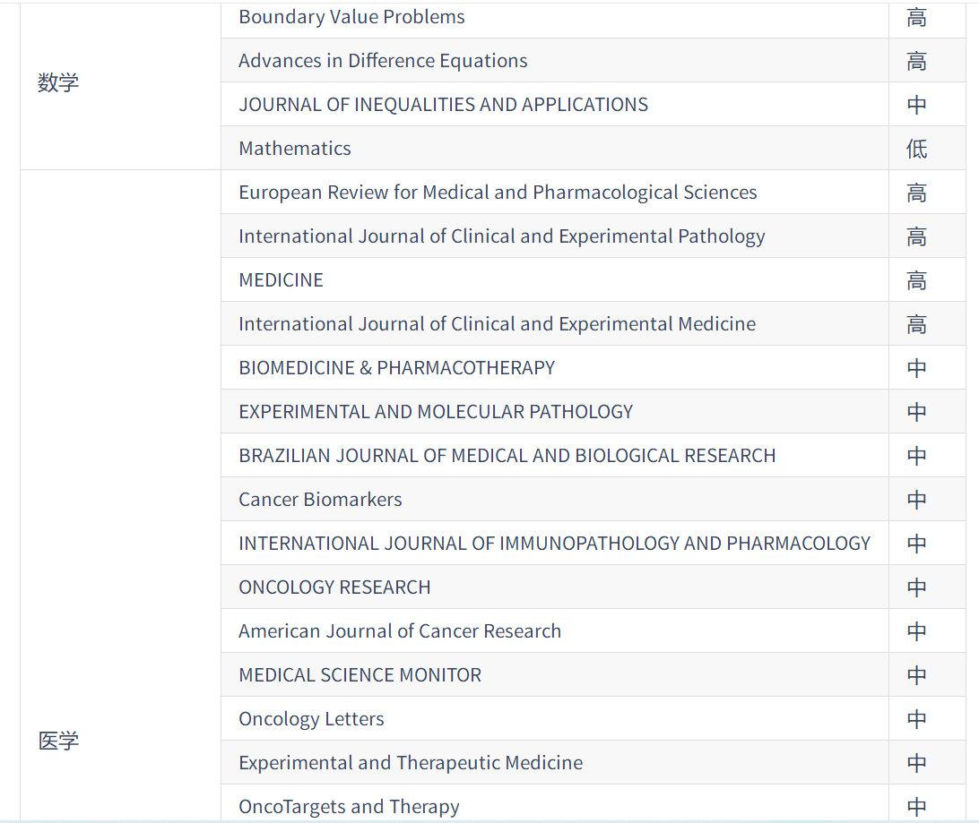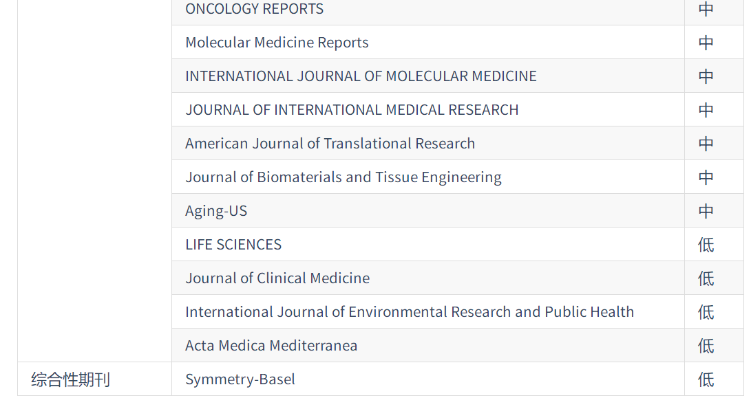 2020年《国际期刊预警名单(试行)》: