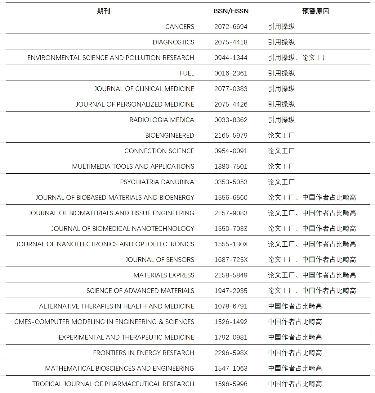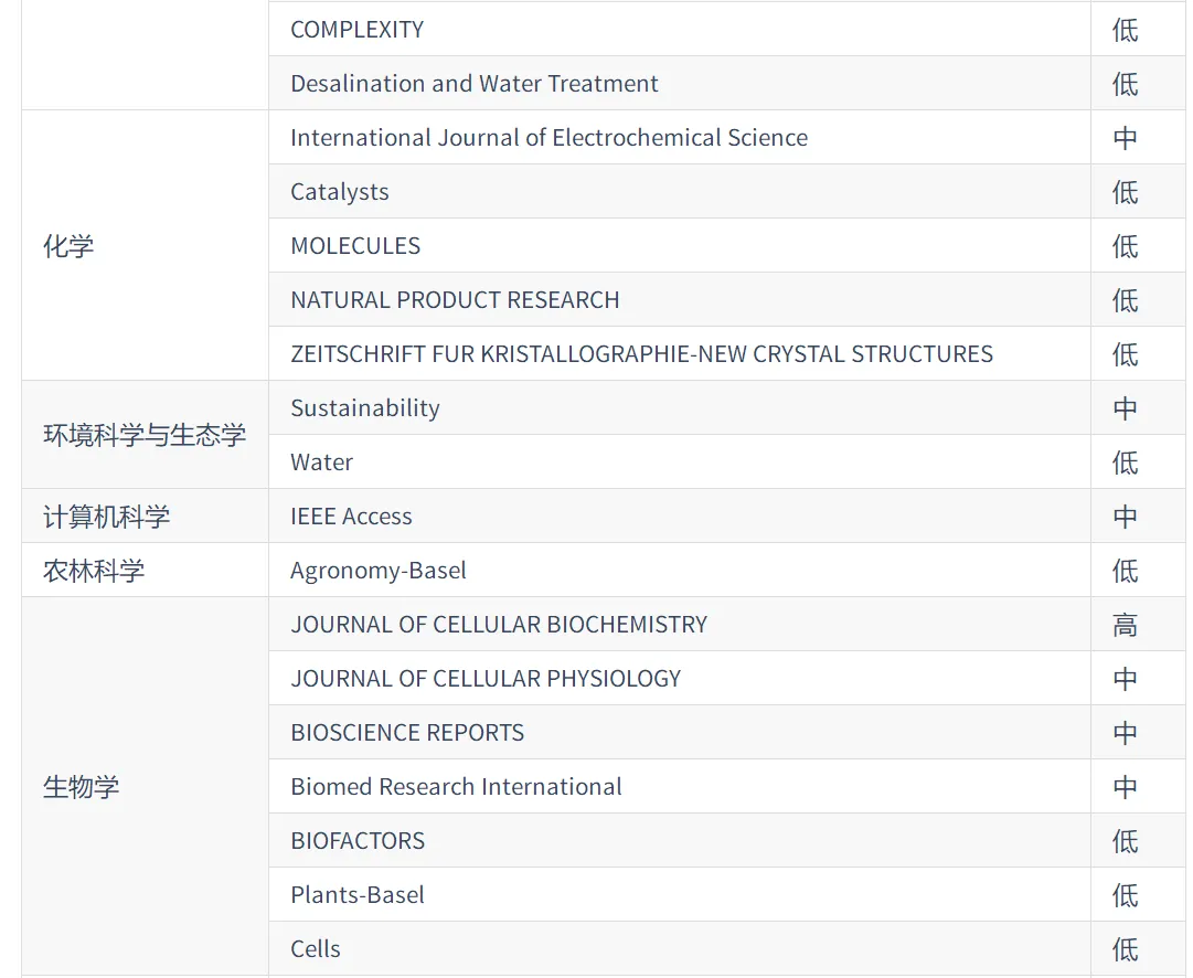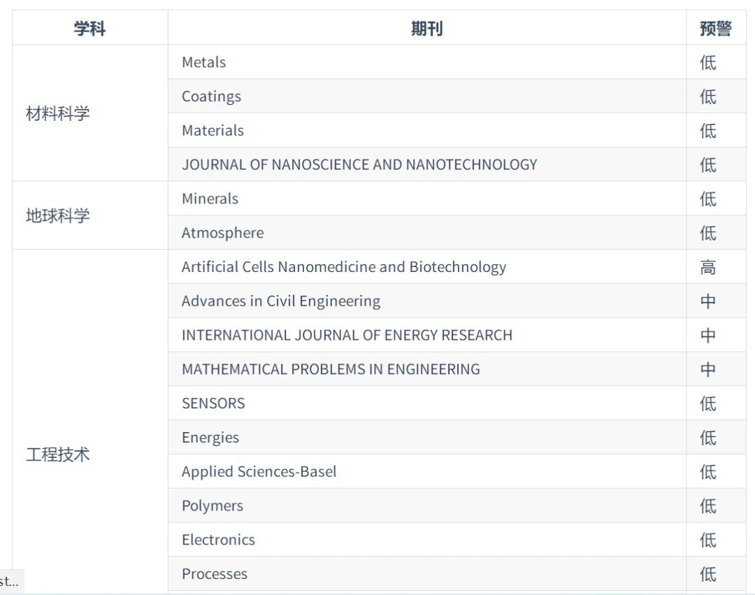 2024年中国科学院预警期刊名单: