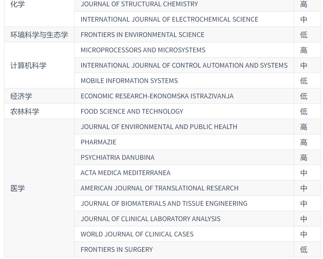 2023年《国际期刊预警名单(试行)》: