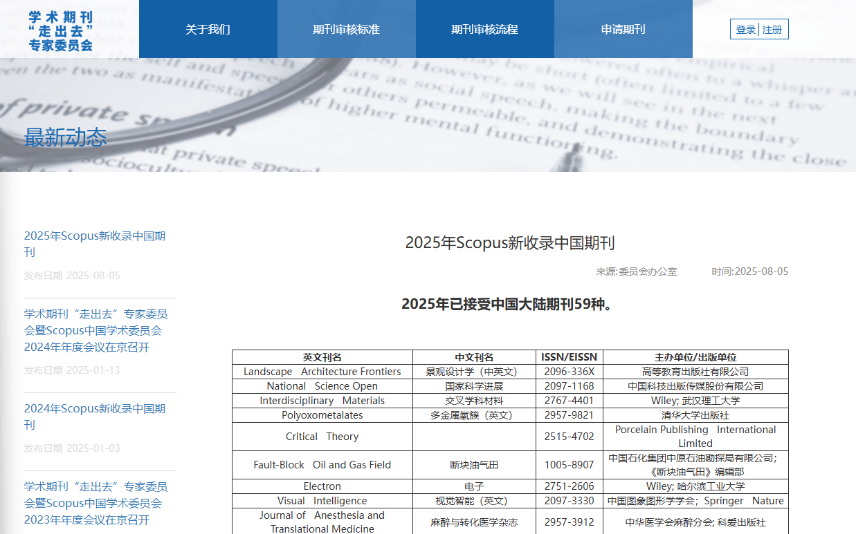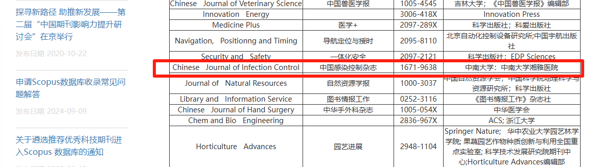 2025年8月,《中国感染控制杂志》通过Scopus内容遴选与咨询委员会(Content Selection & Advisory Board)评估,正式被Scopus数据库收录。