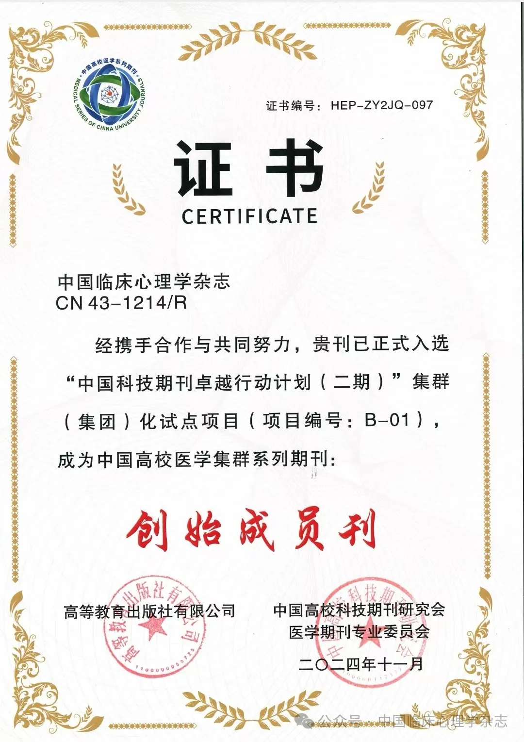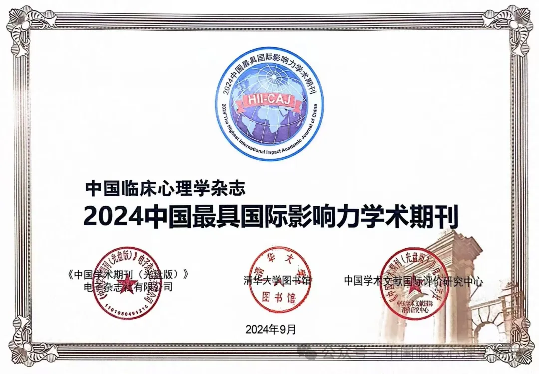 1.《中国临床心理学杂志》入选“2024中国最具国际影响力学术期刊”