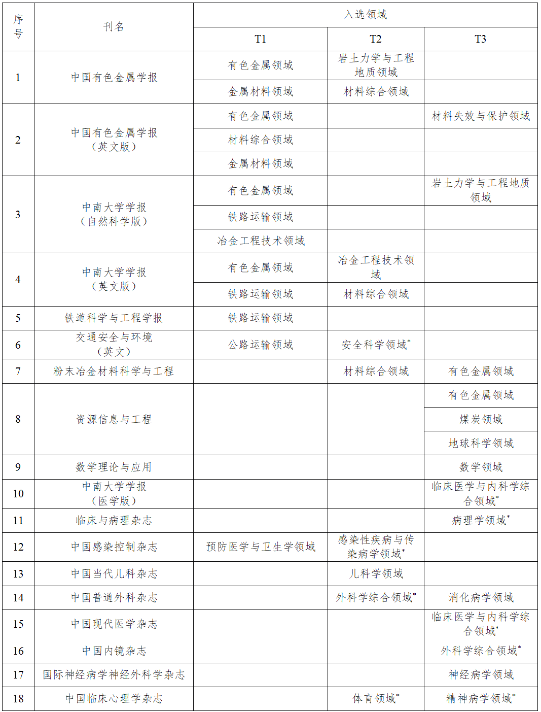 中南大学18本期刊被列入《高质量科技期刊分级目录》:7本T1级