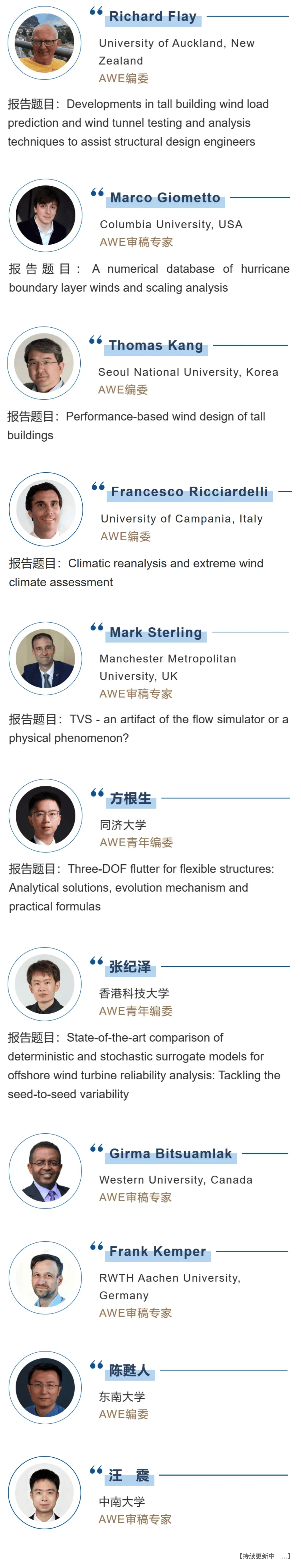 继2024年夏季、冬季及2025年夏季三期研讨会取得圆满成功之后,2025年《风工程进展(英文)》国际研讨会(冬季),The 2025 International Workshop (Winter) on Advances in Wind Engineering将于2025年12月14日-15日在中南大学天心校区隆重召开。我们诚挚邀请AWE编委会全体成员、风工程领域的专家学者、研究者人员拨冗莅临,并热烈欢迎广大读者与作者踊跃参会,共襄学术盛会!